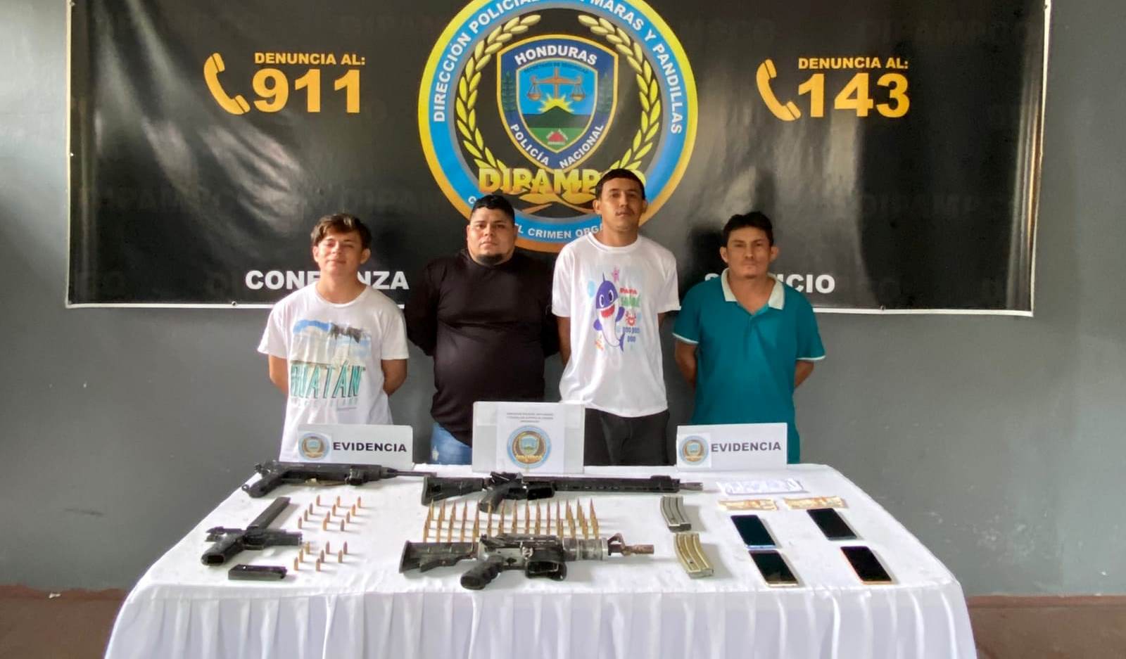 En posesión de un arsenal de guerra, la Dirección Policial Anti Maras y Padillas Contra el Crimen Organizado (DIPAMPCO) capturó a cuatro supuestos miembros de la pandilla 18, a quienes se les vincula con los recientes hechos violentos suscitados en el norte del país.
