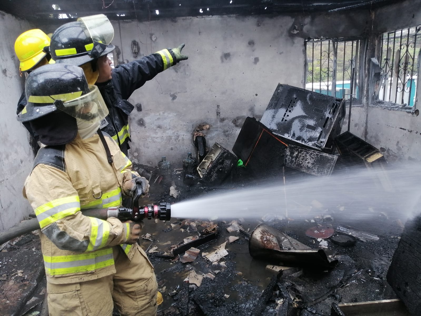 El cuerpo de Bomberos llegó al lugar de los hechos y controlaron las voraces llamas que arrasaron contra esta casa y trabajaron incansablemente para que el fuego no se propagara a los hogares de los alrededores.