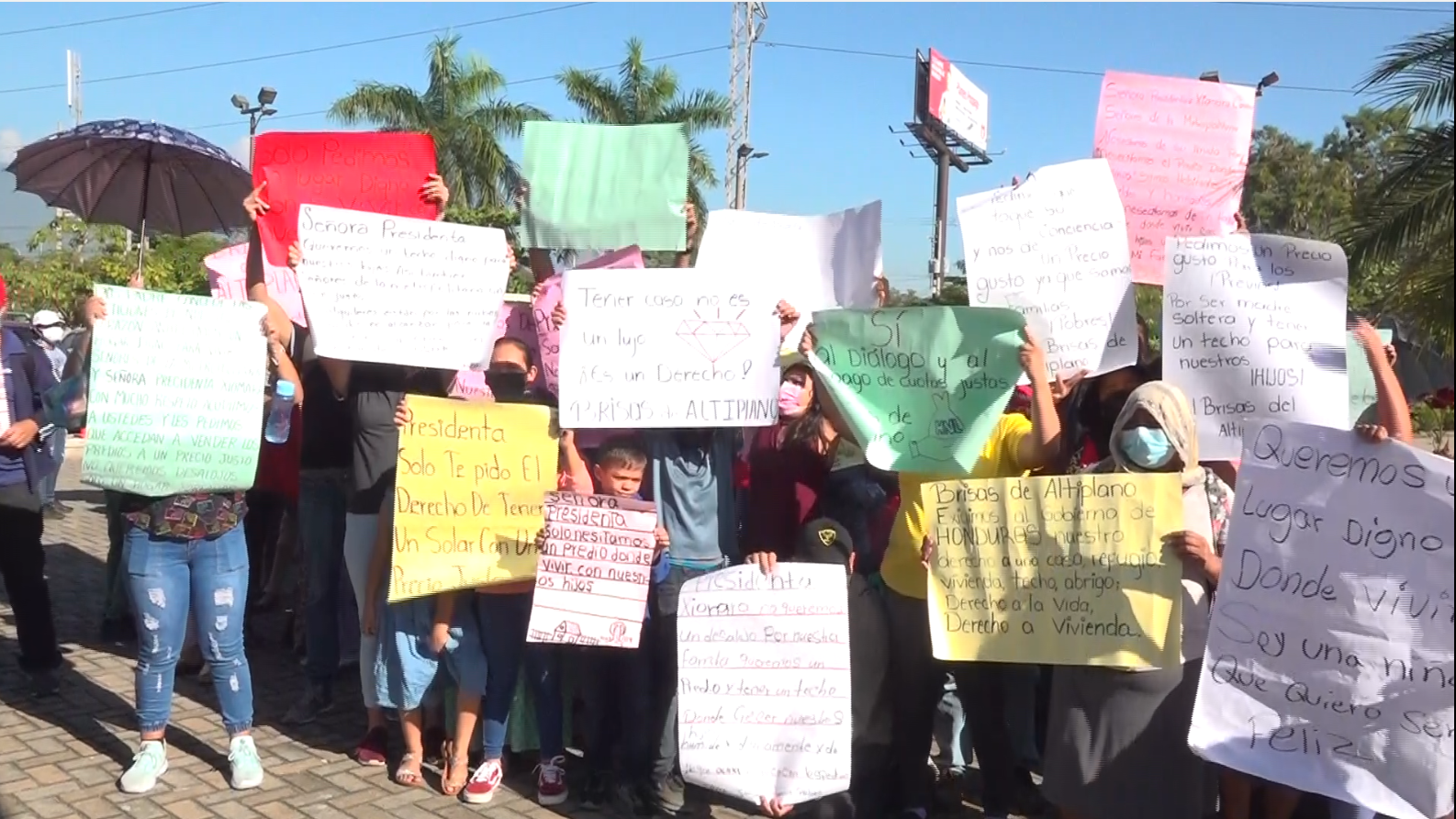 Más 250 familias protestaron este lunes frente a la Corte Suprema de Justicia (CSJ) en San Pedro Sula, en donde se está desarrollando audiencia contra 17 imputados por expropiación de tierra en la colonia Brisas del Altiplano de la ciudad industrial.
