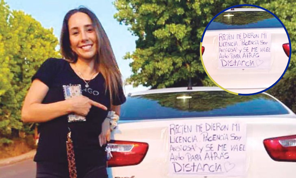 Según una entrevista de LUN, para evitar pasar ratos desagradables con otros conductores, la chica decidió colgar un letrero detrás de su coche para advertirle a las demás personas que había adquirido recién su licencia de conducir.