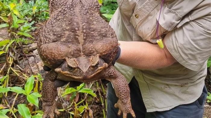 Los guardabosques en el noreste de Australia se sorprendieron cuando se encontraron con lo que podría ser el sapo más grande registrado, con un peso de casi 3 kilos (6 libras).