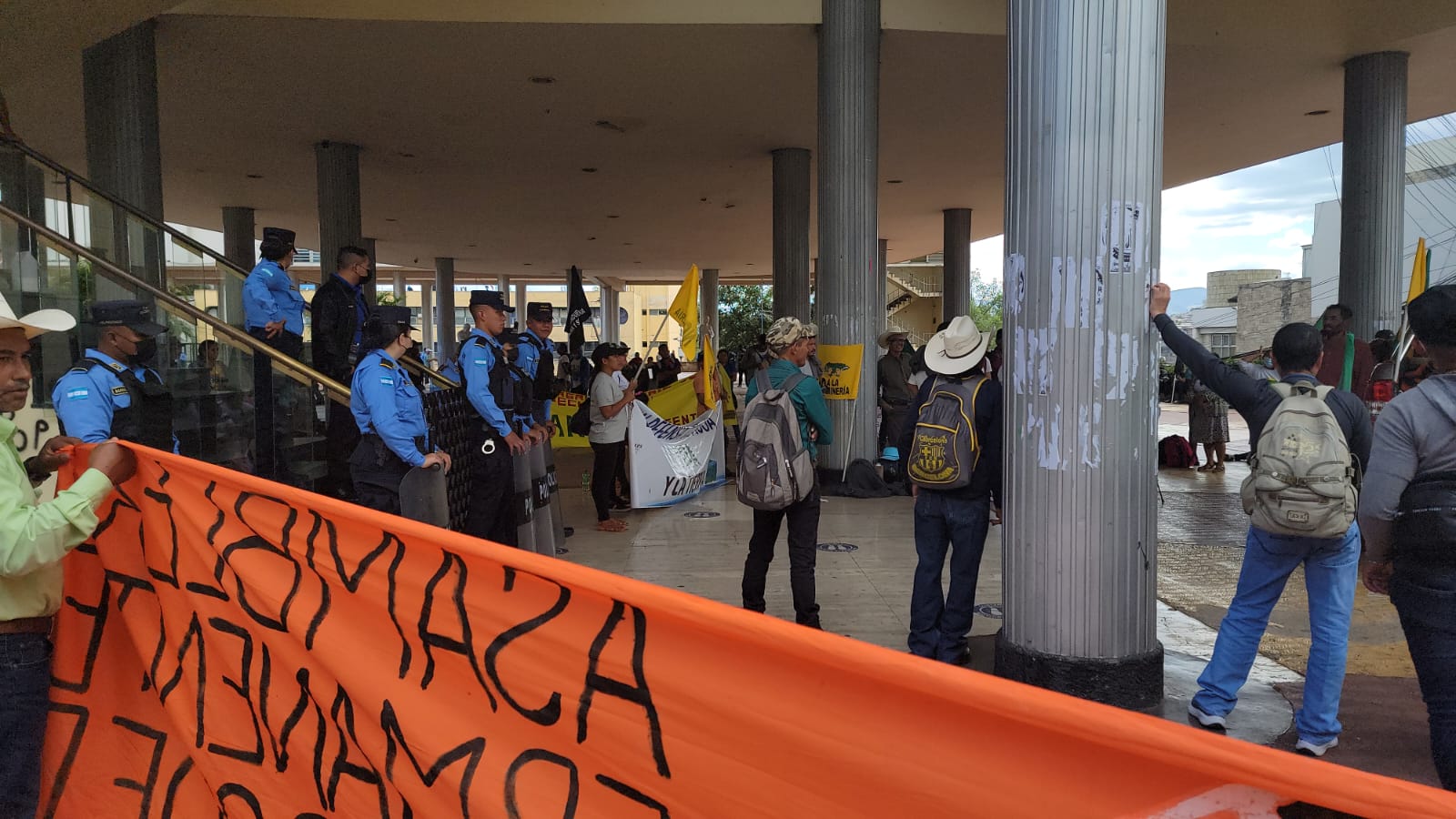 Diferentes grupos indígenas y la Plataforma Agraria protestan en los bajos del Congreso Nacional en Tegucigalpa para pedirle a los futuros magistrados de la Corte Suprema de Justicia que velen por los grupos campesinos.