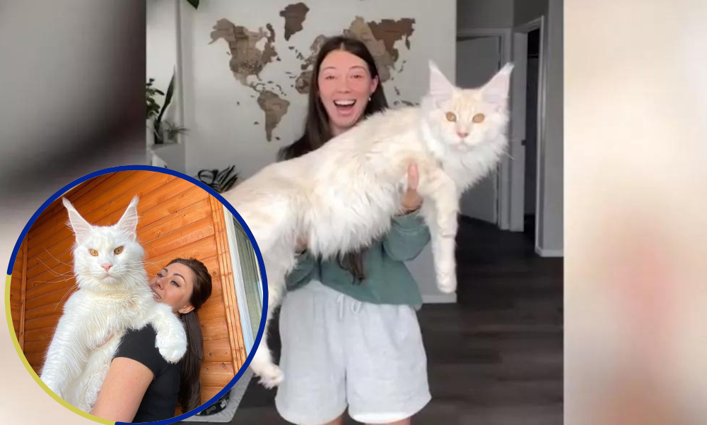 Según su relato, ella adoptó al gato cuando tenía apenas tres meses de nacido. Hoy, con nueve meses, mide un metro de largo y pesa más de seis kilos.