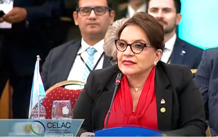 La Presidenta de Honduras, Xiomara Castro, durante su discurso en la séptima Cumbre de Jefes y Jefas de Estado del Gobierno de la Comunidad de Estados latinoamericanos y Caribeños (CELAC), inició agradeciendo a sus homólogos, expresidentes latinos y al pueblo hondureño.