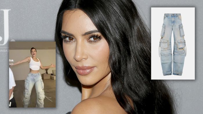 El pasado lunes, Kardashian compartió un video de Tik Tok en el que aparece bailando con su hija mayor North West. La estrella de la telerrealidad, quien ha dejado atrás el rubio platinado, lleva un cropped top blanco de tirantes y unos pantalones estilo cargo, de tiro alto, con bolsillos en los laterales y perneras anchas con detalles desgastados.