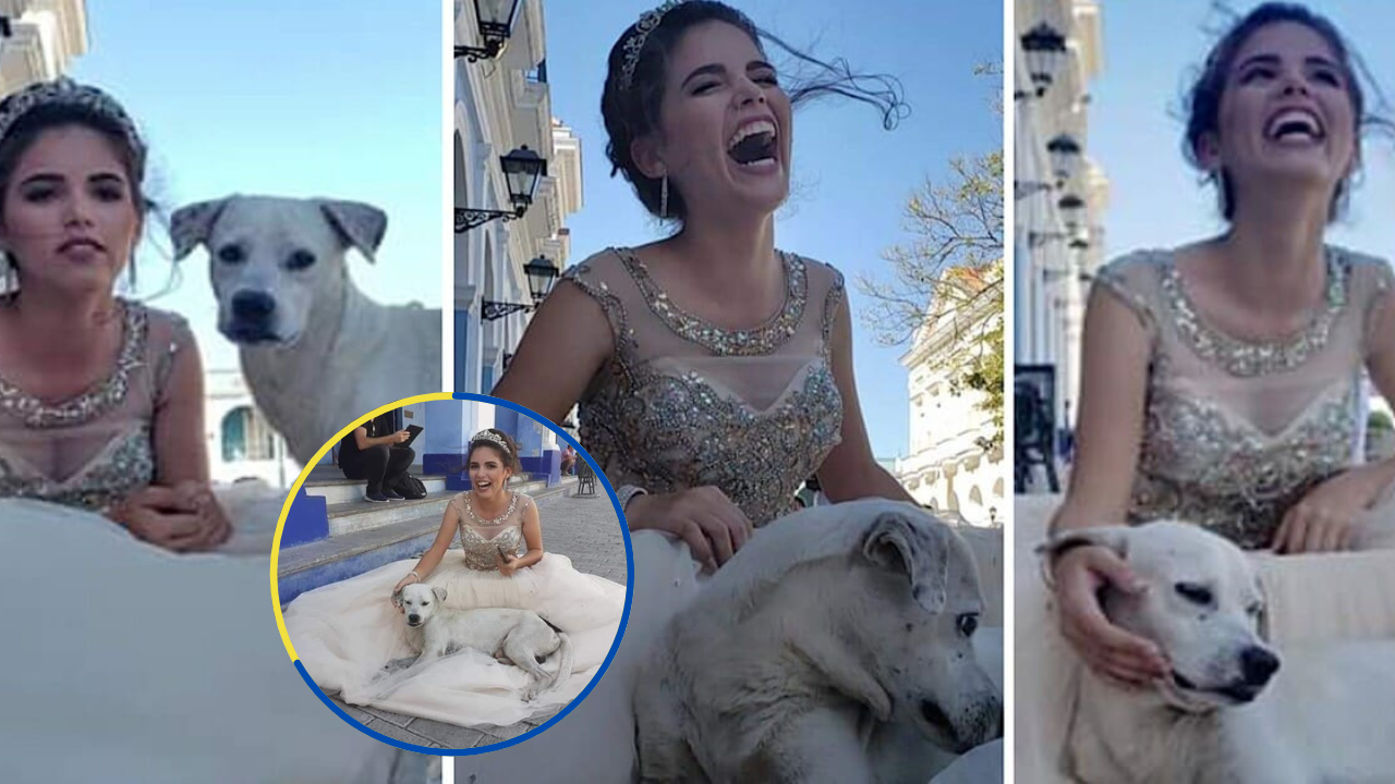 Tal es el caso de Olivia Núñez Zaragoza, una adolescente que posaba para la sesión de fotos de sus XV años en la Plaza de La Vigia (Cuba) cuando de repente un can callejero hizo su aparición.