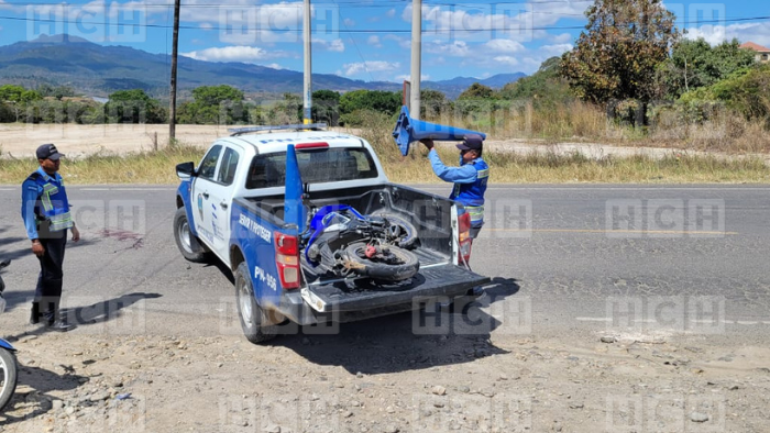 Un joven que se conducía en una motocicleta impactó contra la parte trasera de de un vehículo tipo hilux, el hecho se suscitó en la carretera internacional CA-4 a inmediaciones de la entrada al municipio de Cucuyagua, Copán.