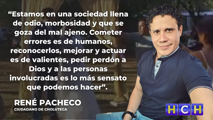 “Ya dejen el chambre, estamos en una sociedad que se llena de odio, morbosidad y se goza del mal ajeno. Cometer errores es de humanos, reconocerlos, mejorar y actuar es de valientes, pedir perdón a Dios y a las personas involucradas es lo más sensato que podemos hacer”, escribió René Pacheco en un mensaje inicial.
