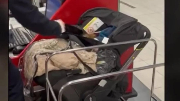 Tras una discusión con el personal de la aerolínea, la pareja no se salió con la suya y, para el asombro de todos, dejó al bebé en el cochecito y se dirigió hacia el control de pasaportes sin él.