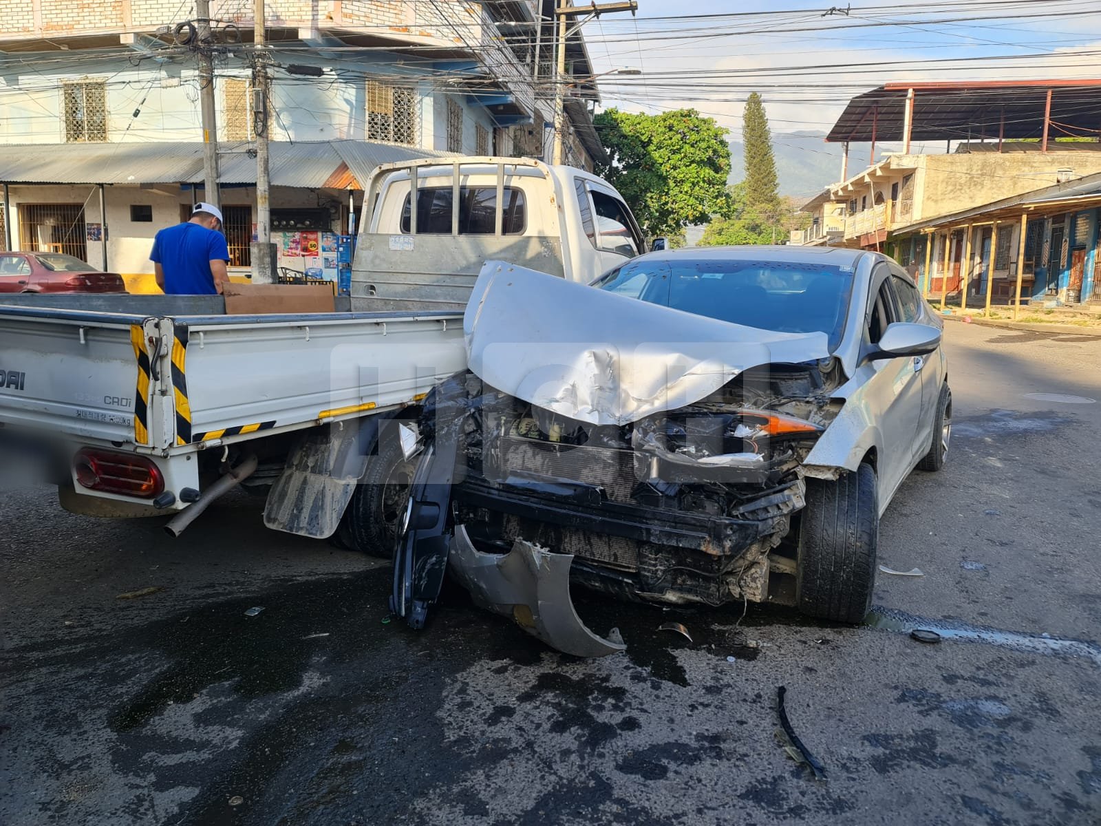 Un vehículo tipo turismo chocó contra un camioncito en el barrio Medina de San Pedro Sula.