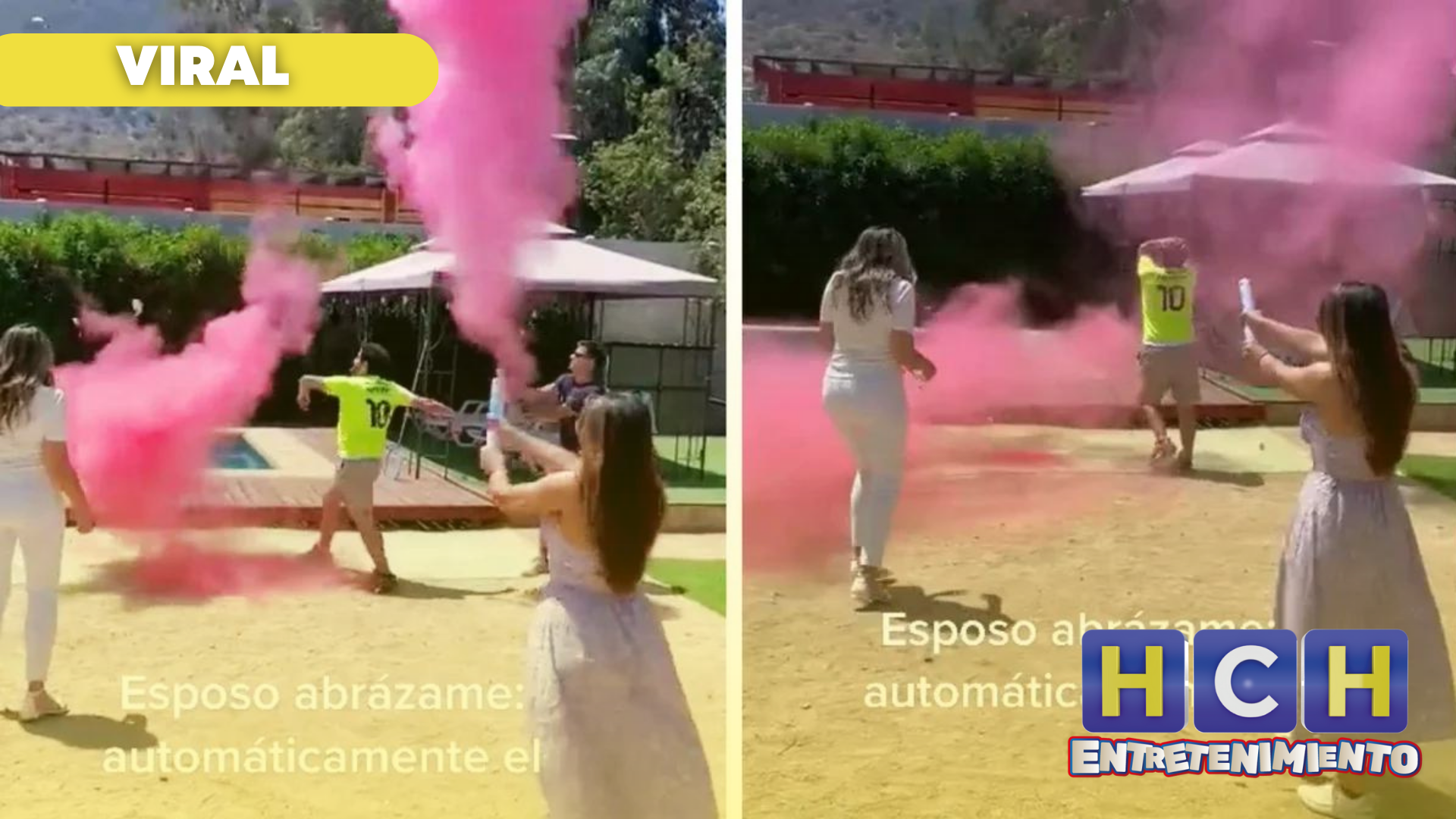 Desde la cuenta de TikTok de Olena González, se puede ver cuando la mujer le arroja una pelota de fútbol a su esposo para desconcertarlo y una invitada despliega un copioso humo rosa. El hombre, sorprendido, se tomó la cabeza sin poder creer lo que estaba viendo.