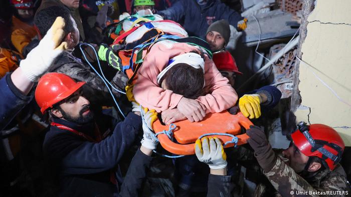 Tras 90 horas sepultados bajo los escombros, los rescatistas lograron salvar a un bebé de diez meses con su madre en el sureste de Turquía. Según el Departamento de Bomberos de Estambul, involucrado en el rescate, los dos fueron encontrados vivos el viernes (10.2.2023) en el distrito de Samandag, en la provincia de Hatay. Los rescatistas envolvieron al bebé en una manta térmica.
