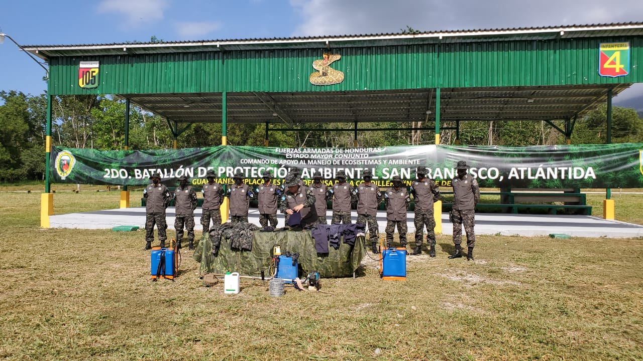 El II batallón de Protección Ambiental en San Francisco, Atlántida, realizó el decomiso de indumentaria policial y militar, pasamontañas, cargadores, fundas de pistolas, pasamontañas y otros instrumentos para cometer delitos.