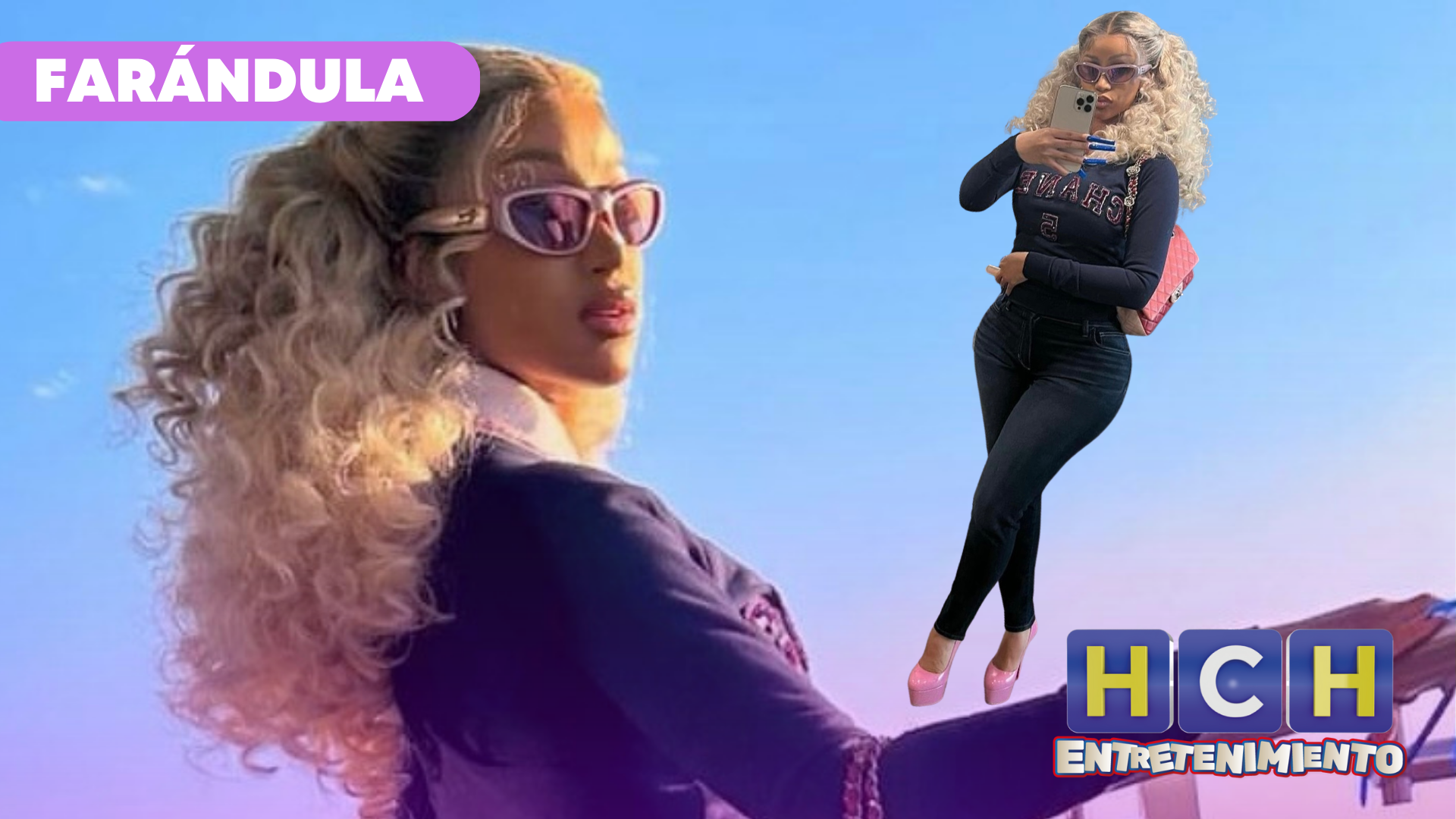 Aparte de los zapatos rosa, la rapera vistió unos jeans casuales, un suéter chic de Chanel, un bolso de la misma marca y su cabello en un estilo rizado inspirado en los años setentas.
