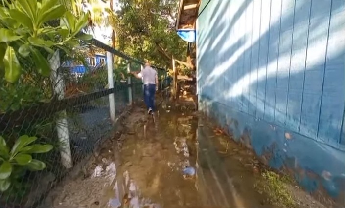 Bajo un techo que por poco se cae, sillas en mal estado, víctimas de la lluvia y el sol, semejantes charcos de agua, así reciben clases los niños de este sector.