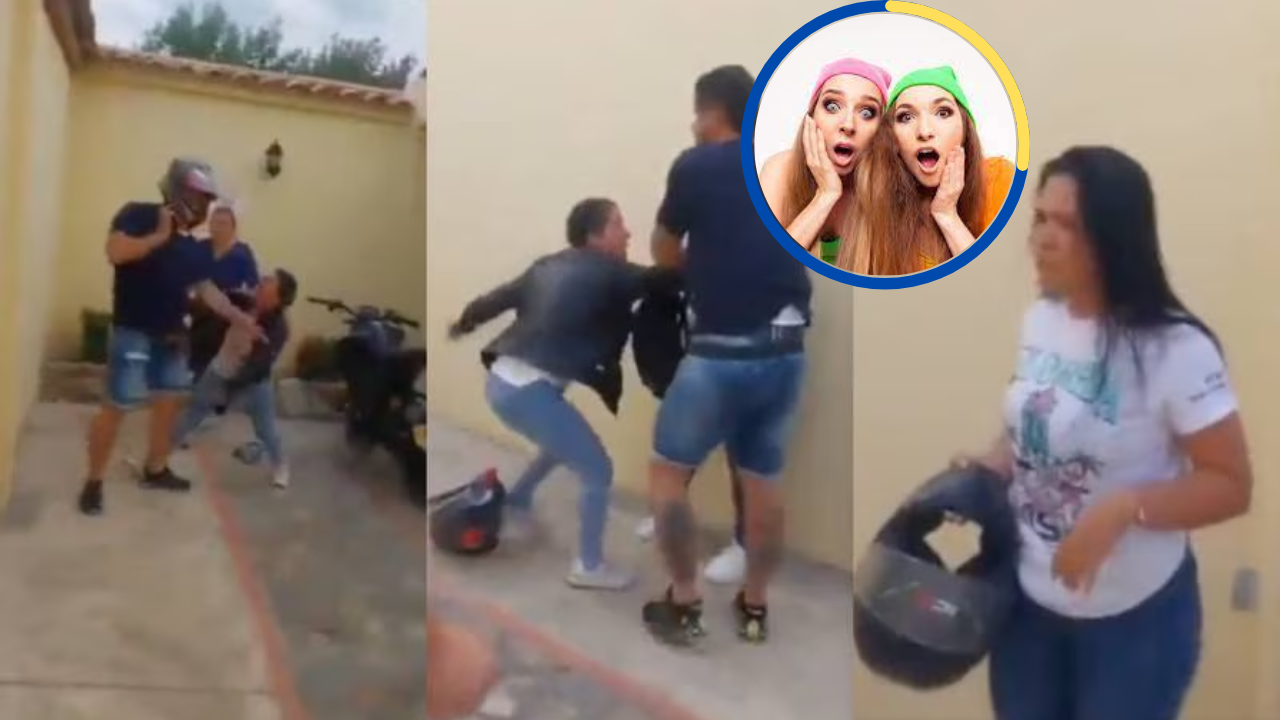 Luego, se volteó hacia la mujer y también la agredió por varios segundos, hasta que el esposo intentó proteger a la amante de los golpes de su esposa.