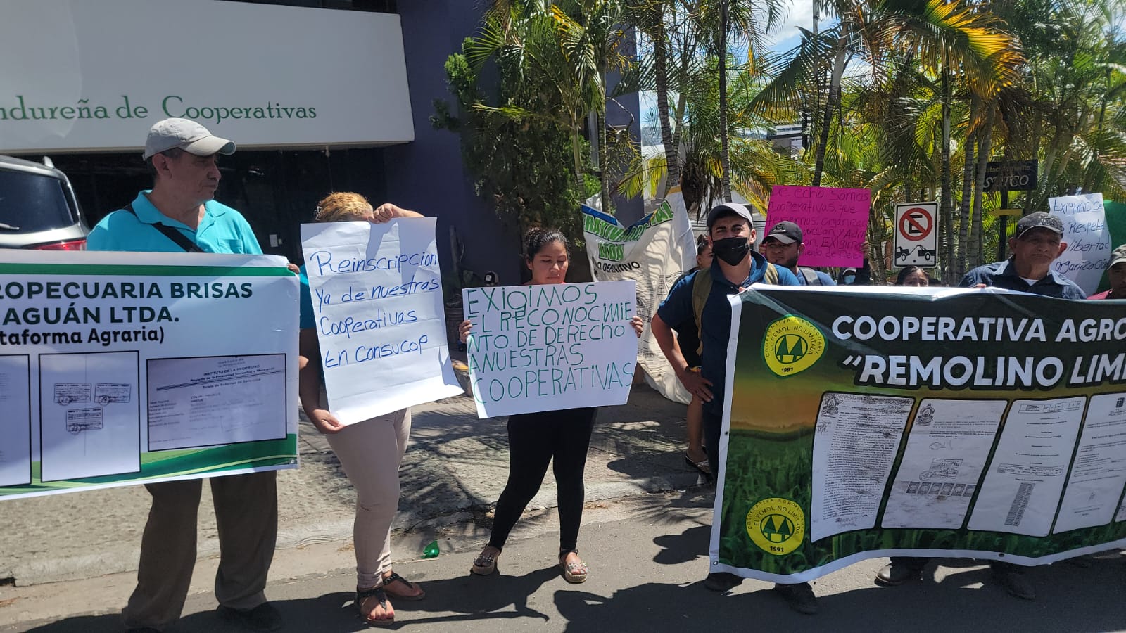 Miembros de al menos 14 cooperativas protestan en las afueras del Consejo Nacional Supervisor de Cooperativas (Consucoop) para que escriban estas instituciones financieras a esta consejo.