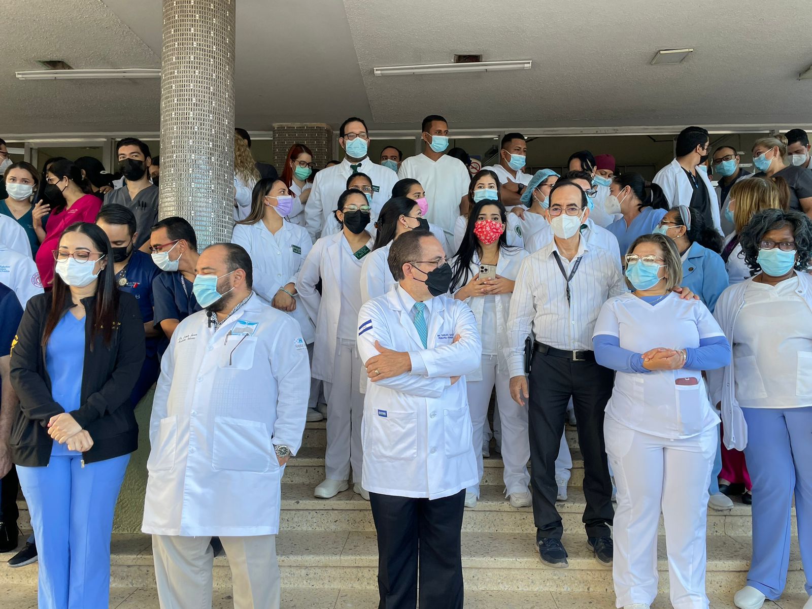 Personal del Hospital Escuela de Tegucigalpa protesta para que por fin se desembolsen 176 millones de lempiras para la reconstrucción de seis quirófanos en este centro.
