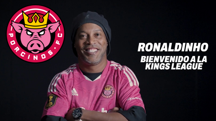 Ronaldinho participará con el Porcinos FC de Ibai Llanos ante PIO FC de la mexicana Rivers. El astro brasileño Ronaldinho participará este domingo 26 de febrero como jugador 12 en la Kings League con Porcinos FC, equipo cuyo presidente es el creador de contenido Ibai Llanos.