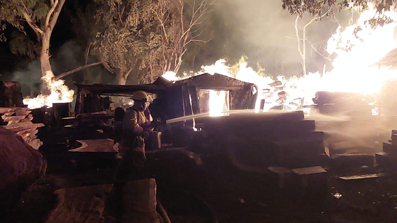 El Cuerpo de Bomberos llegó hasta el lugar de los hechos y trata de sofocar las intensas llamas que ya dejan grandes pérdidas materiales.
