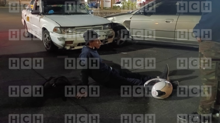 El accidente se produjo en el Bulevar Juan Pablo II de la capital. El motociclista impactó con los carros que colisionaron llevándose la peor parte.