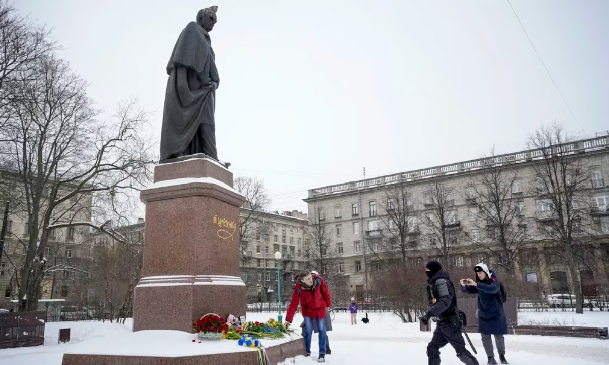 En concreto, 18 personas fueron arrestadas por la Policía rusa en San Petersburgo por realizar acciones antibelicistas individuales, como colocar flores en el monumento al pintor ucraniano Taras Shevchenko, escribir sobre la nieve o realizar piquetes.