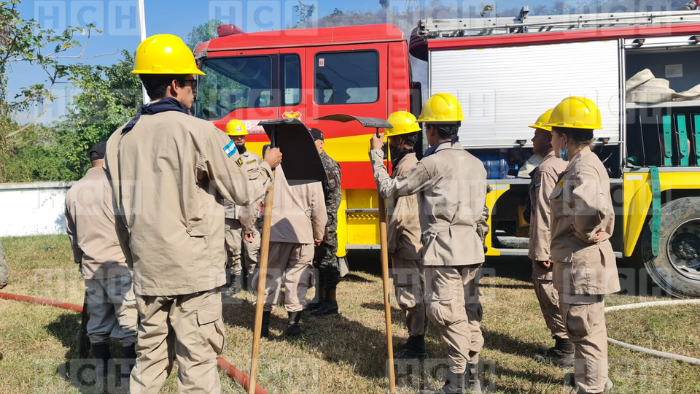 Un feroz incendio arrasa uno de los cerros del Bulevar del Este en San Pedro Sula. Personal del Ejército y miembros del Cuerpo de Bomberos trataron de controlar el incendio que estaba destruyendo el bosque.