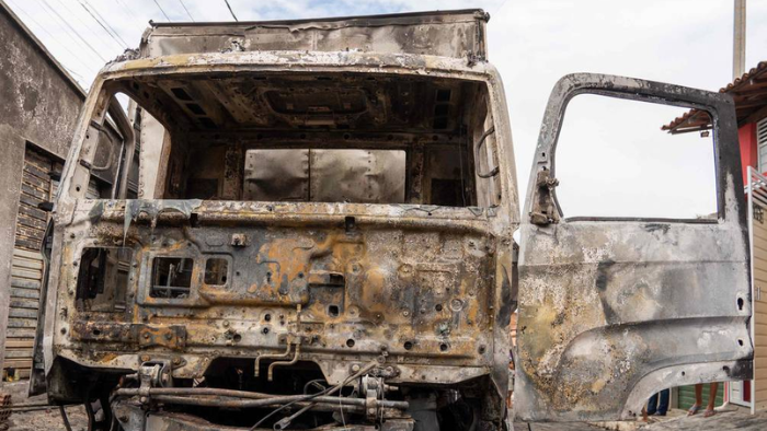 Imágenes difundidas por redes sociales y medios locales mostraron autobuses, camiones y otros automóviles en llamas, y patrullas policiales con orificios de balas.