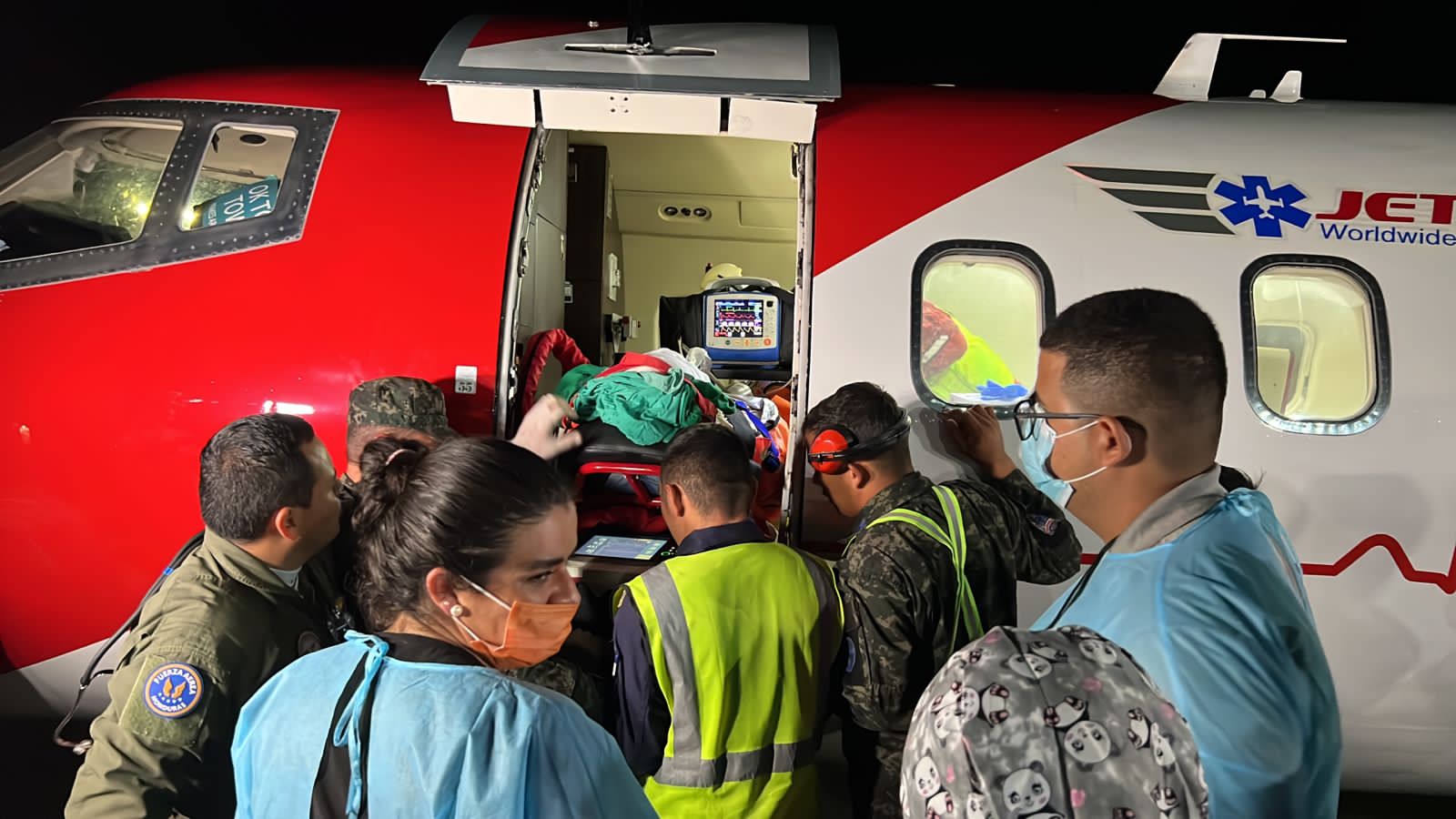 Todos ellos fueron trasladados en dos aviones ambulancias que aterrizaron en horas tempranas a la Base Aérea Hernán Acosta Mejía, en Tegucigalpa, en la capital de Honduras.
