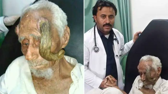 El yemení vivió durante más de 40 años con la protuberancia que crecía cada vez más, incluso una de ellas era tan grande que llegaba a tocar la boca del anciano, motivo por el que decidió someterse a una intervención para cortar el cuerno.