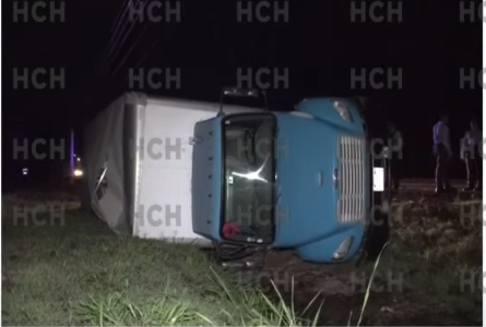De acuerdo al conductor, lo intentaron asaltar y robarle su producto, por eso se despistó y terminó volcando a un lado de la carretera.