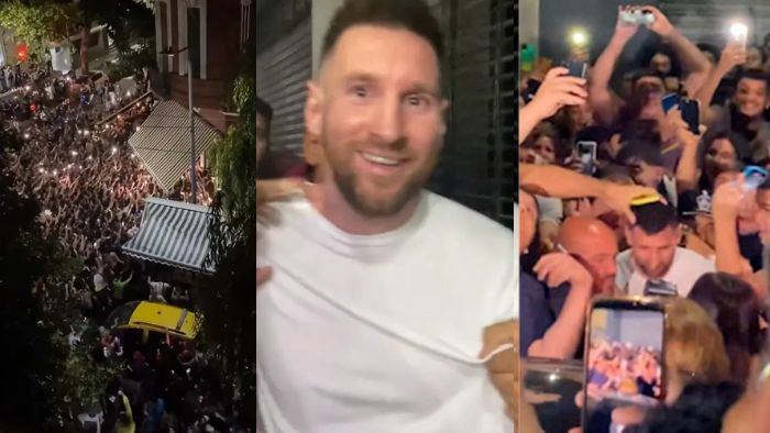 La llegada de Messi al restaurante se viralizó de tal manera que, mientras estaba cenando en una parrillada, rodearon en masa el lugar a la espera de la salida del crack argentino. En las imágenes se puede observar cómo Leo fue protegido por la Policía, la cual tuvo que acudir al restaurante para refugiar al campeón del mundo.
