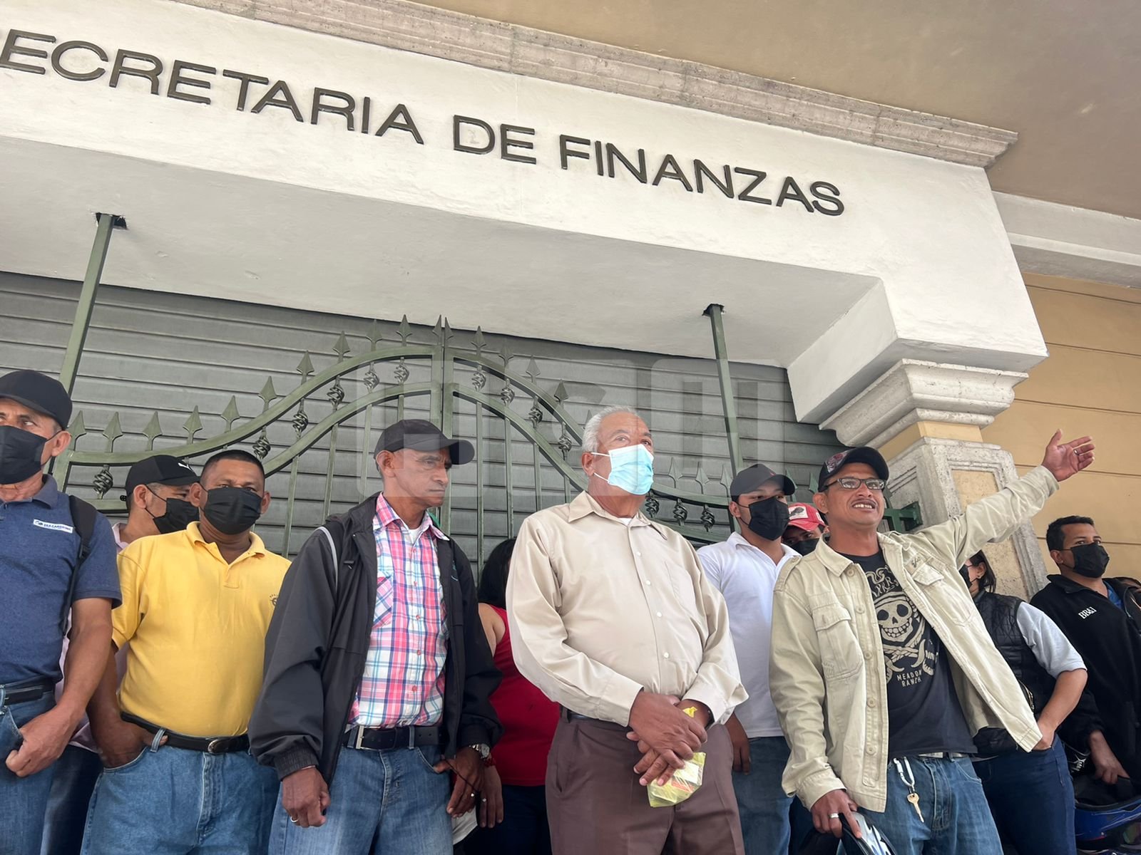 Exempleados de la compañía de seguridad privada «Seguro Protection» protestan frente a las instalaciones de la Secretaría de Finanzas (Sefin) y exigen que esta estatal desembolse el pago pendiente a sus jefes.
