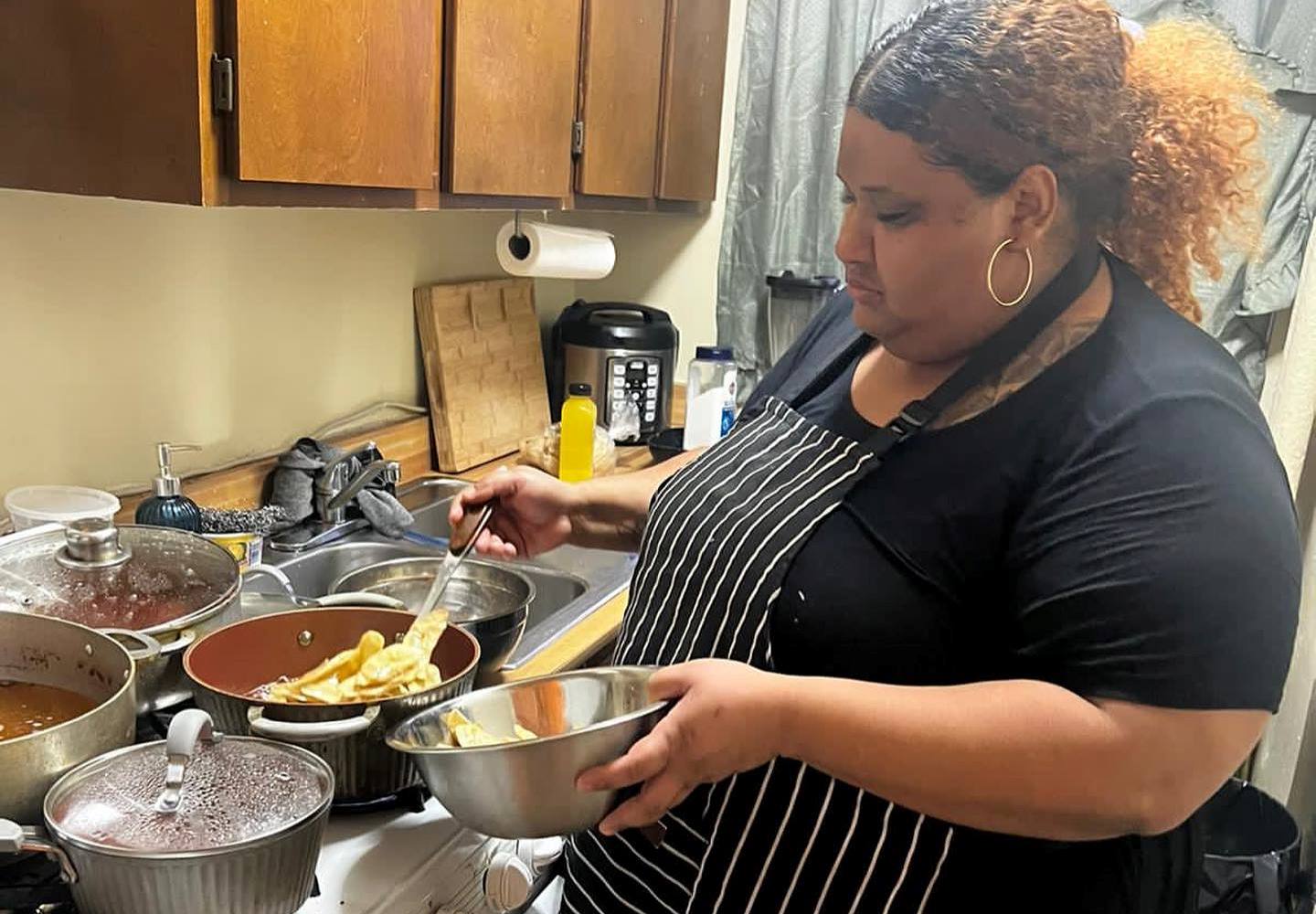 Ella prepara desde su casa exquisitos jugos naturales y además vende platos típicos catrachos como: Tajaditas de plátano, carne asada, pan de casa, pollo chuco, chuleta frita y otras delicias.