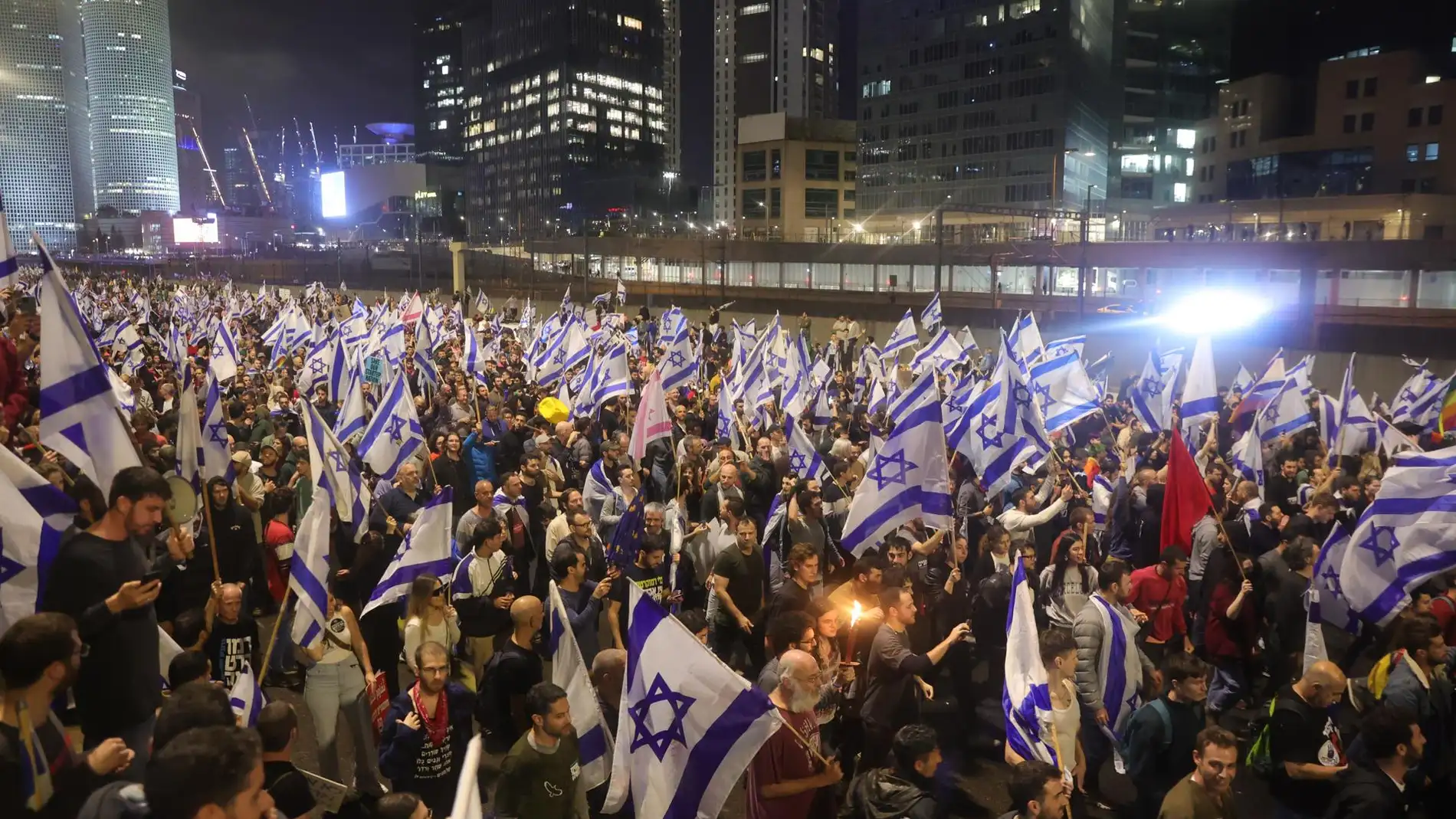 De hecho, la situación en Israel este lunes es muy complicada: la Unión General de Trabajadores de Israel, el principal sindicato del país ya ha paralizado el tráfico aéreo del aeropuerto internacional de Ben Gurión, en Tel Aviv, mientras las universidades del país han interrumpido sus clases; y hasta un grupo de alcaldes y líderes municipales amenazan con comenzar una huelga de hambre.