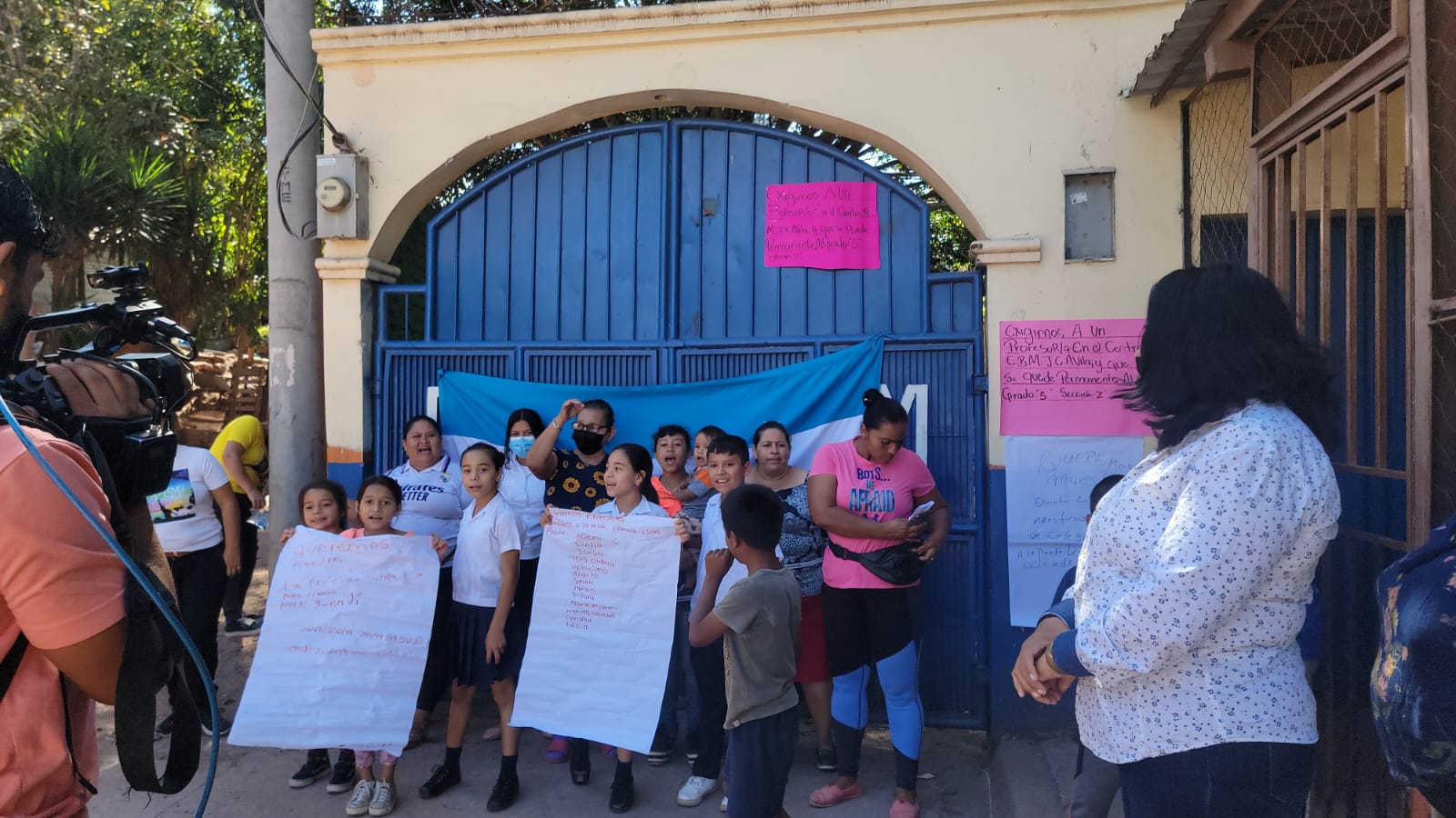 Padres de familia y alumnos de la escuela “Monseñor Jacobo Cáceres” de la aldea Suyapa de Tegucigalpa protestan esta mañana en las instalaciones del centro escolar ante la falta de maestros.