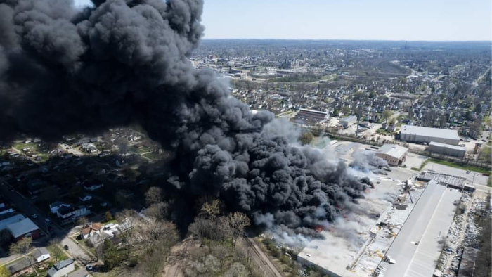 Fuerte incendio en el centro de reciclaje de plástico en Richmond, Indiana, Estados Unidos.
