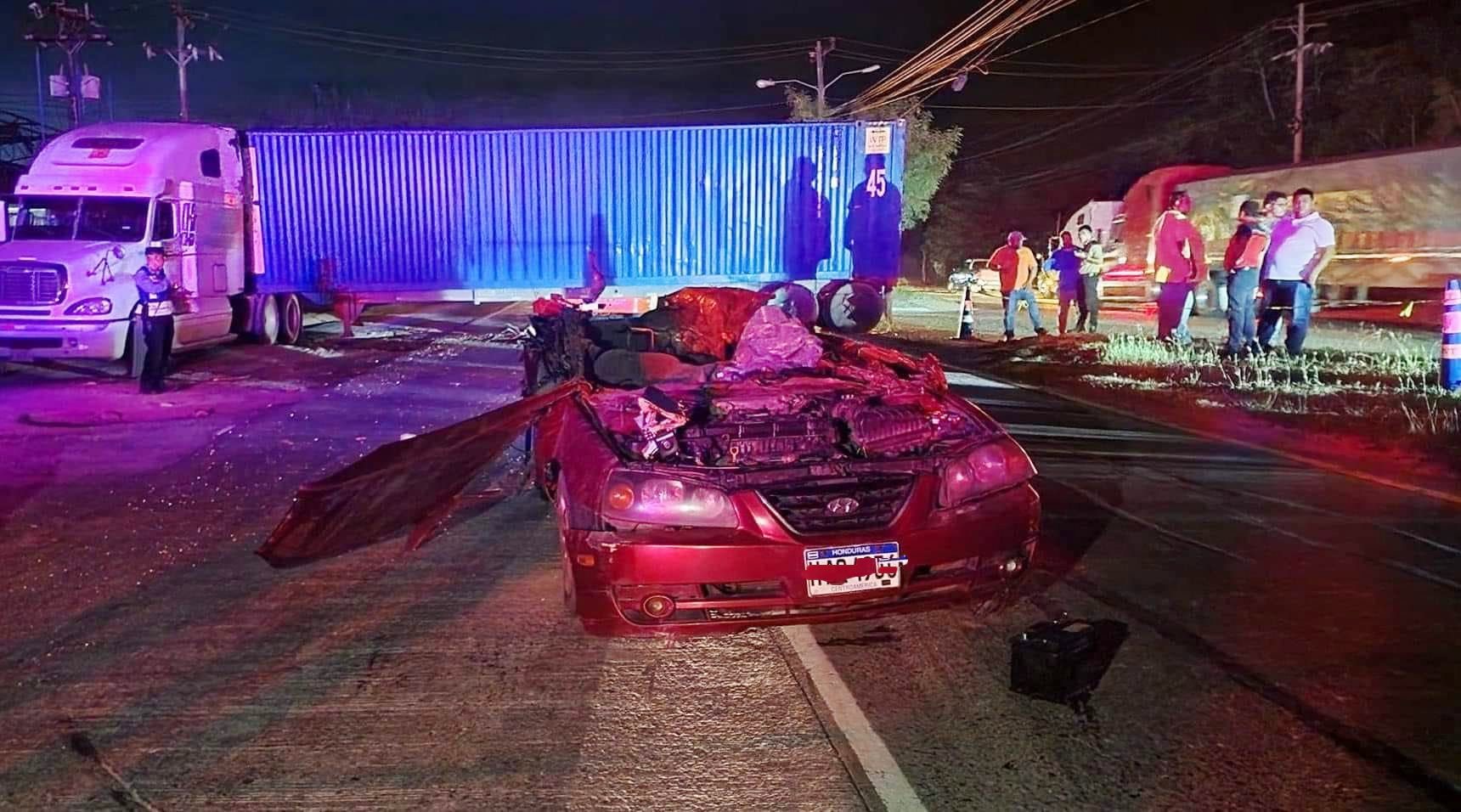 Se menciona que el vehículo tipo turismo pasó por debajo de una rastra que se encontraba cruzada en la carretera.