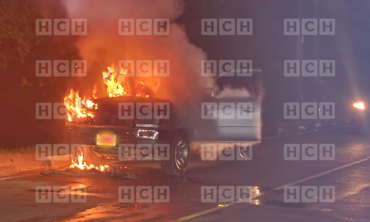 Una camioneta tomó fuego en la carretera que conecta al segundo anillo del bulevar del Norte en SPS. El Cuerpo de Bomberos se hizo presente para extinguir las llamas tras una llamada de emergencia.