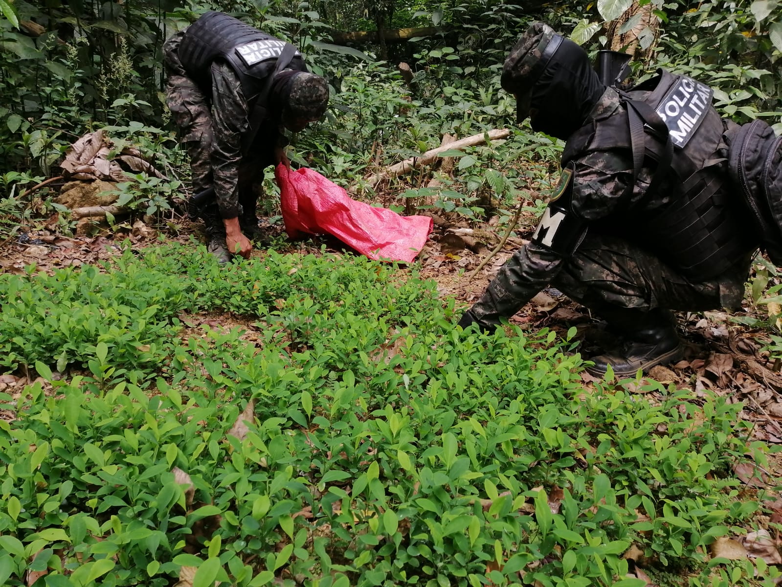 En total se localizaron y aseguraron 40 manzanas con mas de 120 mil arbustos de hoja de coca.