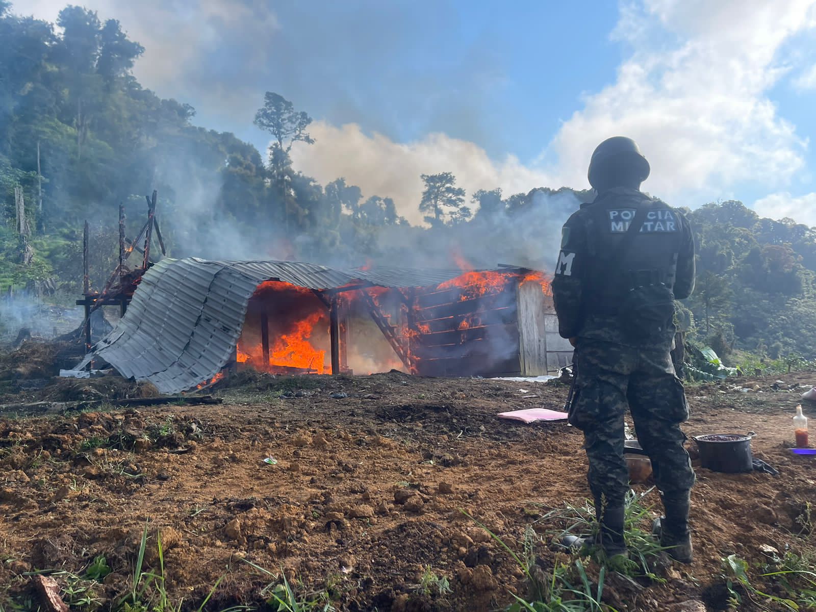 FFAA a través de la PMOP incineró en el Cerro Las Nubes, Trojes el Paraíso, una plantación de 33 manzanas de tierra cultivadas con 297 mil arbustos de hoja de coca.