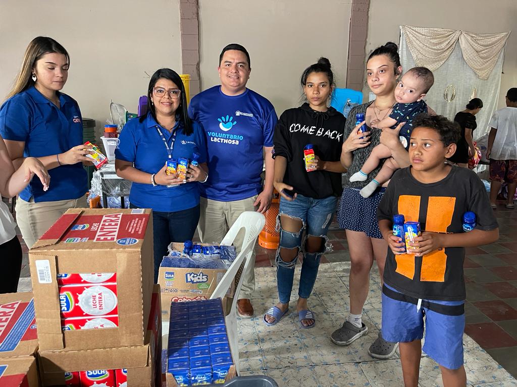 En su visita los embajadores de SULA llevaron de sus productos para compartir con estas familias que lo perdieron todo.