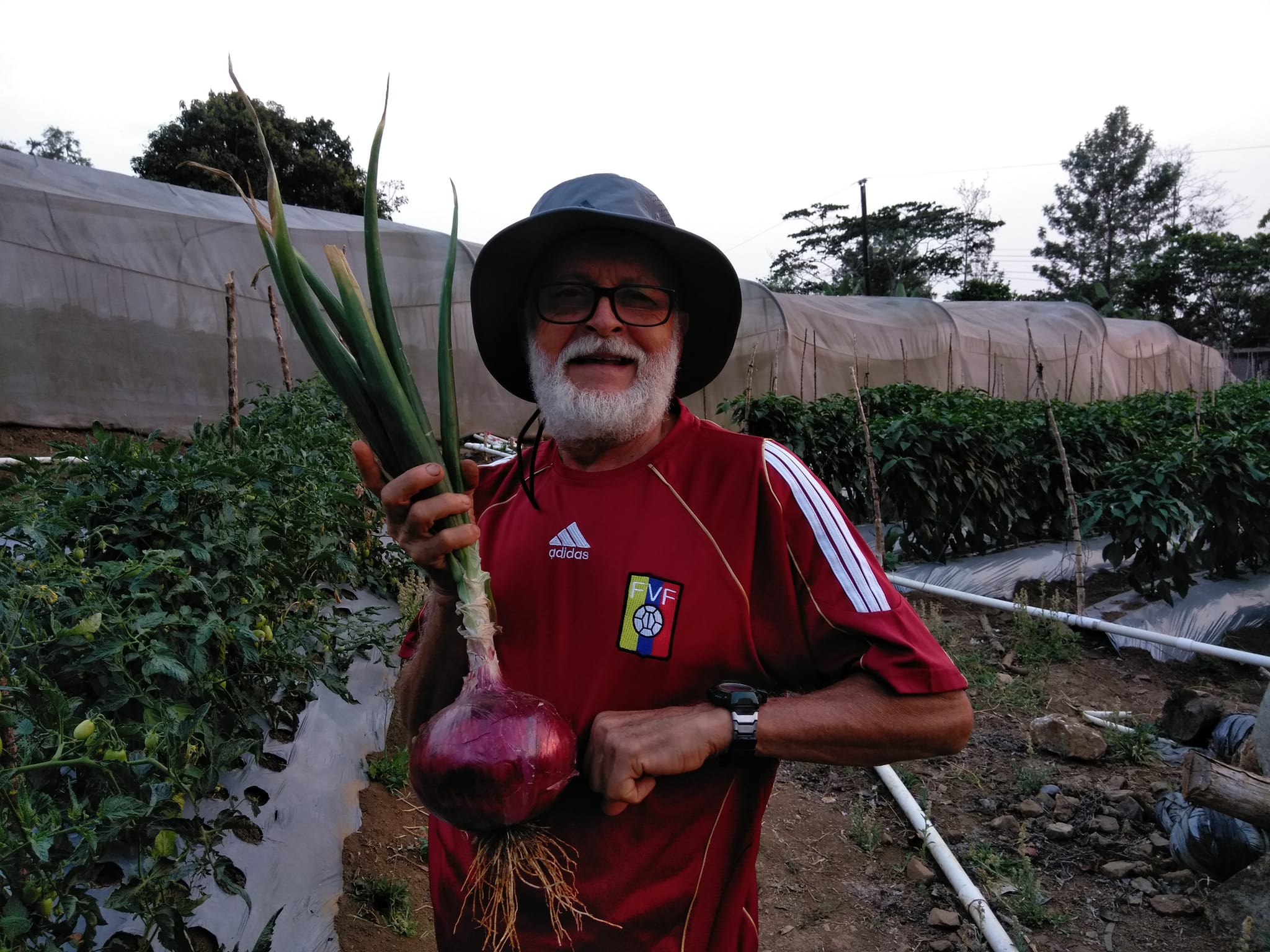 ¿Podría ser este un récord? se pregunta el ambientalista hondureño José Mario Orellana en la comunidad de El Playón en Santa Bárbara en donde ha cultivado una enorme cebolla que pesa poco menos de tres libras.
