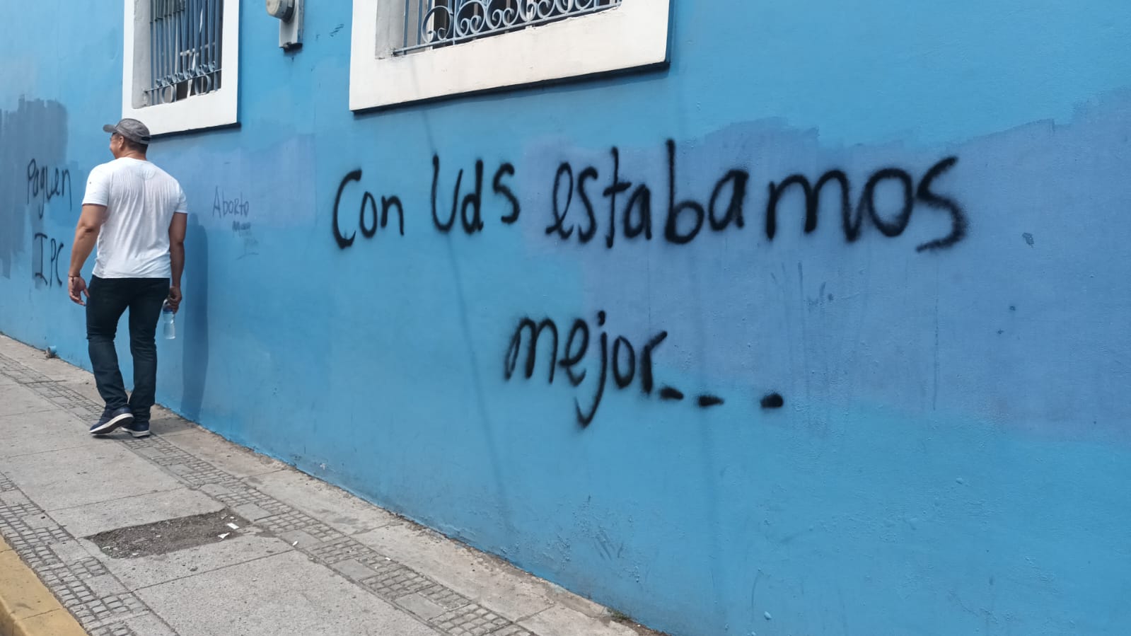 Además, los manifestantes rayaron algunas paredes y calles con diversos mensajes como: “Yo apoyo la Ley de Justicia Tributaria”, “Lo que antes era malo ahora es bueno”, “Fuera Mauricio Ramos” y “No volverán narcotraficantes”.