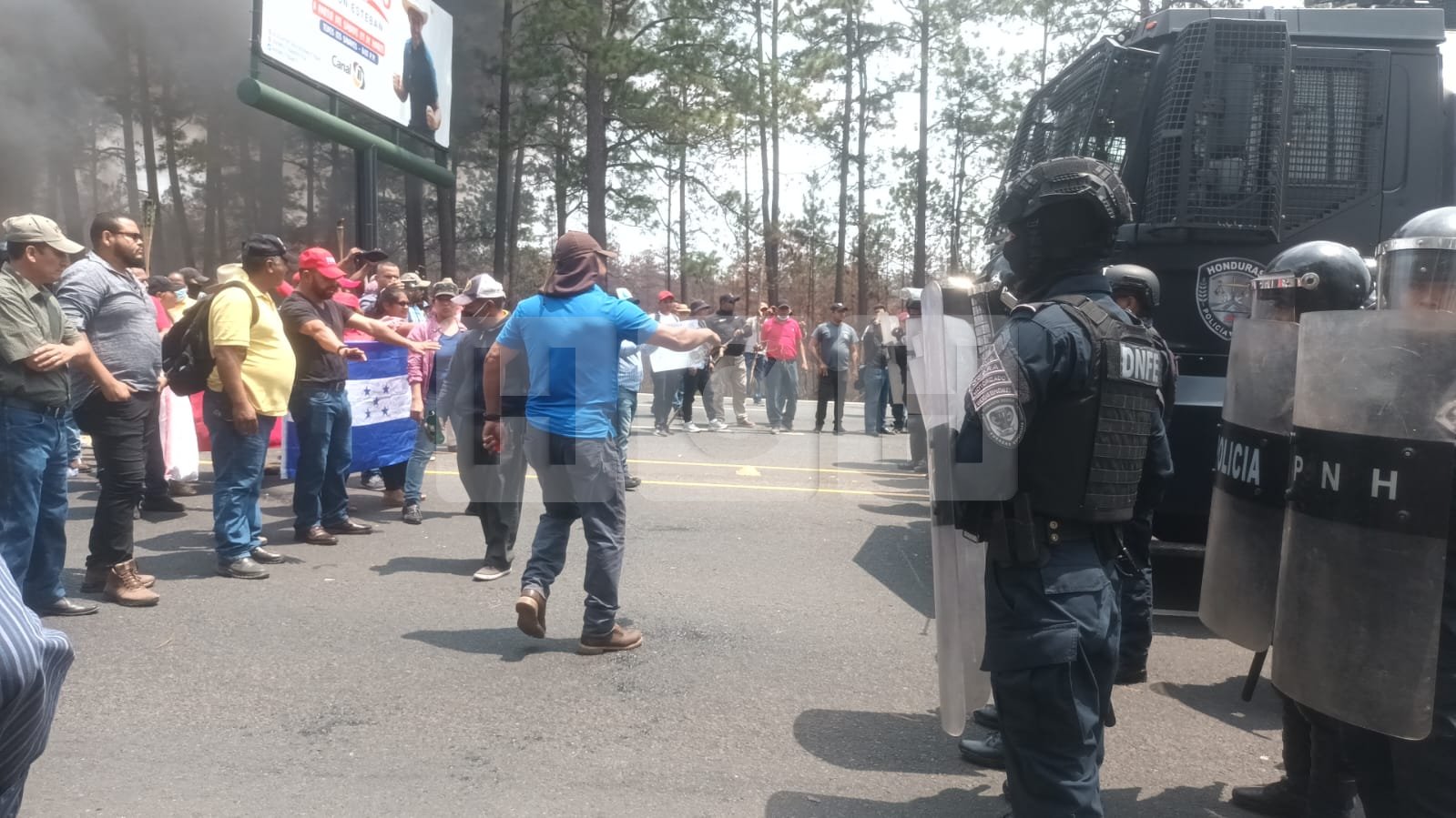 ¡Más protestas! Cientos de efectivos que pertenecían a la Policía Nacional y fueron separados de esta institución, protestan esta mañana en la carretera internacional CA-5 a la altura de Zambrano, Francisco Morazán, exigiendo su reintegro laboral y otros derechos.