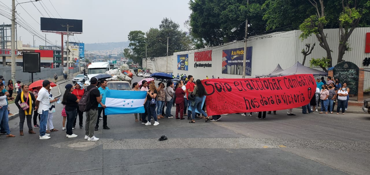 Padres de familia y alumnos del instituto Técnico Luis Bográn protestan en el bulevar del Norte de la capital por falta de maestros en esta institución académica.