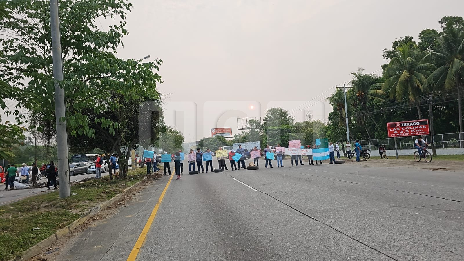 Cientos de efectivos que pertenecían a la Policía Nacional y fueron separados de esta institución, protestan esta mañana en el bulevar del Norte de la ciudad de San Pedro Sula exigiendo su reintegro laboral y otros derechos.