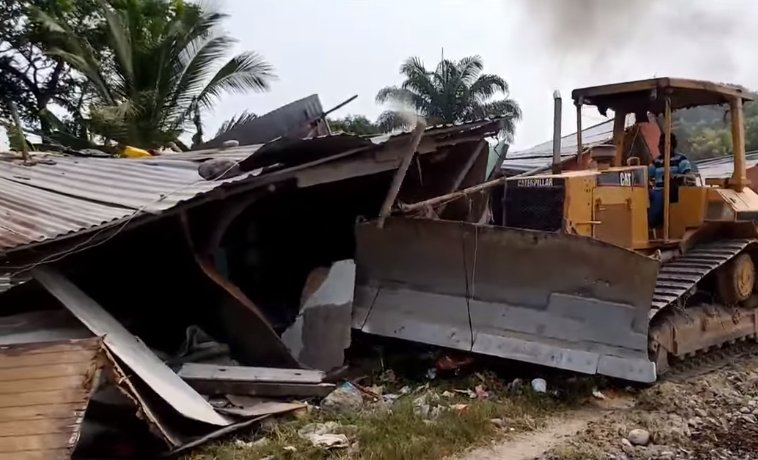 Los invasores habían ocupado estos predios de tierra desde hace cuatro años y tenían construido casas de madera, pero este día las fuerzas del orden destruyeron todo a su paso.