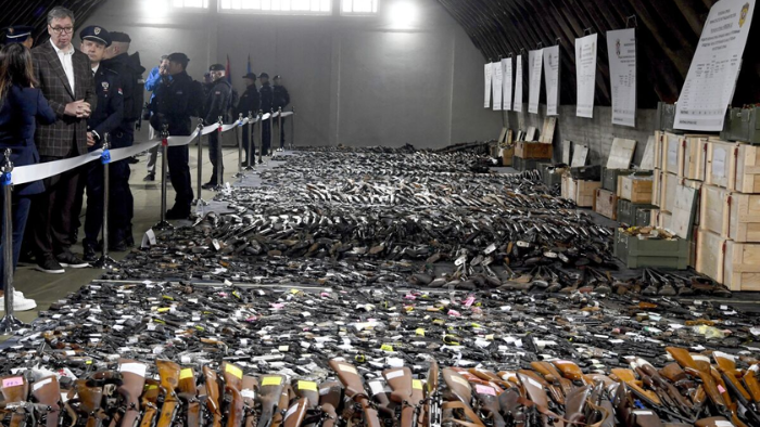 Las autoridades serbias mostraron 13.500 armas que según dijeron ha entregado la gente desde los tiroteos masivos de este mes, y que incluyen granadas de mano, armas automáticas y lanzacohetes antitanque.