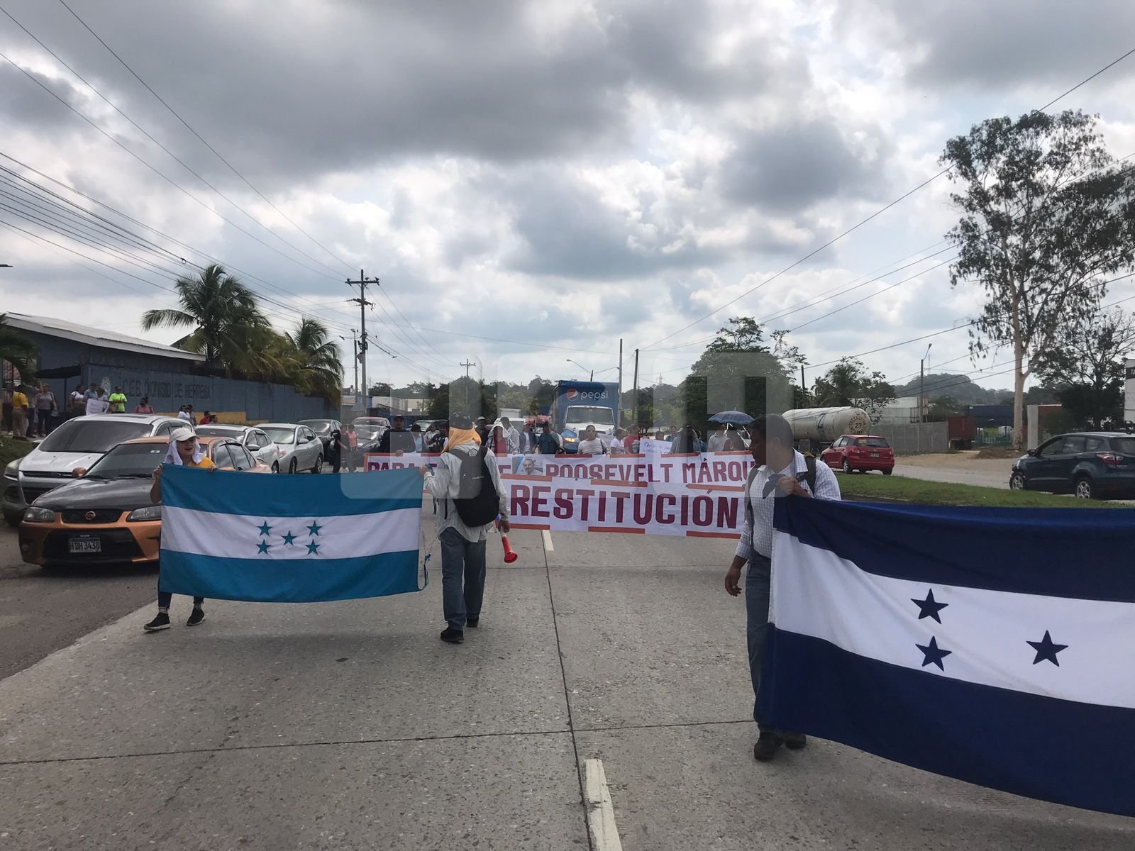 Docentes de la ciudad de Puerto Cortés se toman la carretera internacional CA-13 a inmediaciones de la aldea El Chile en exigencia de varias demandas.